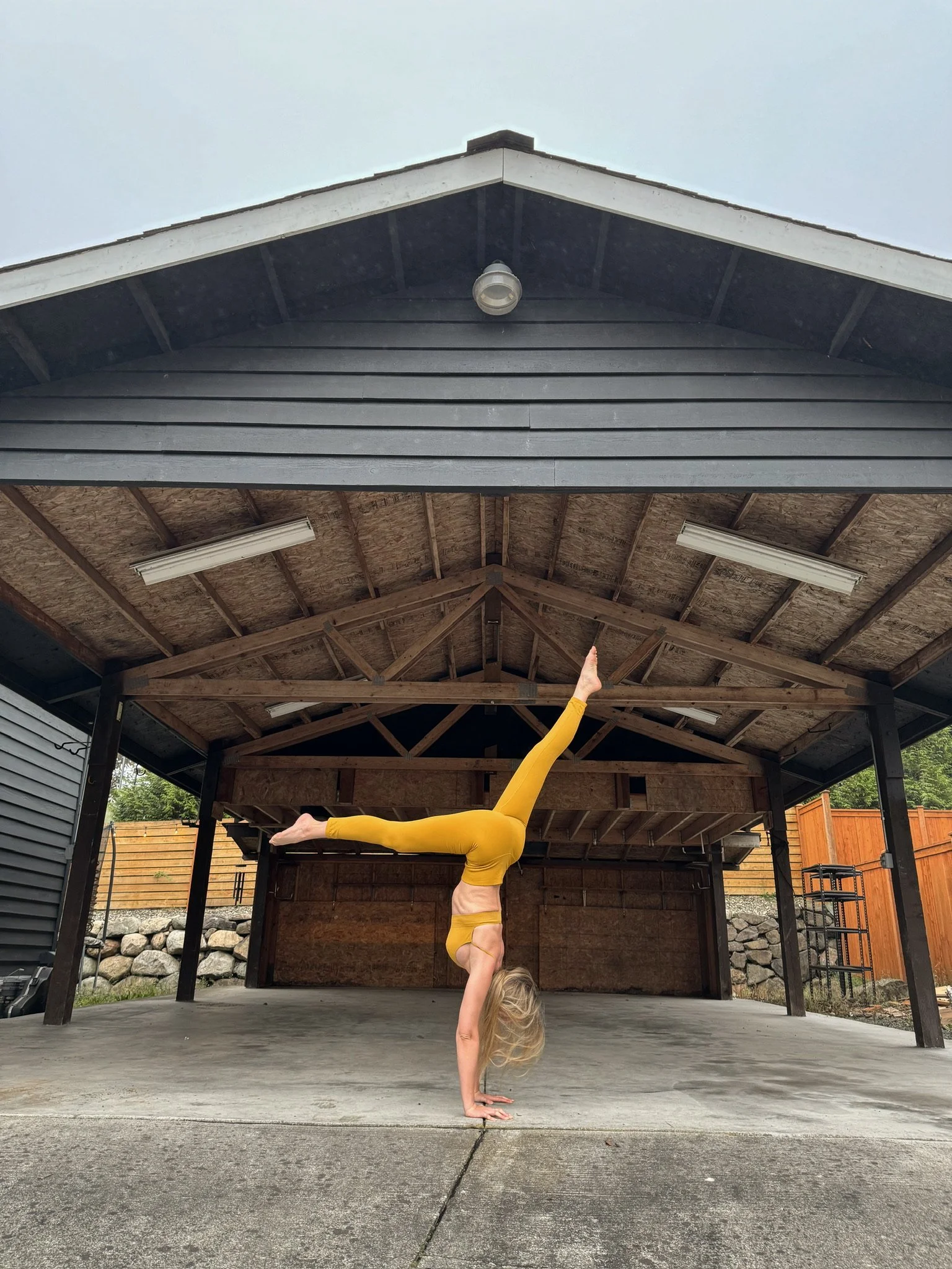 The built-in cabinetry along the back wall not only adds to the aesthetic appeal but also provides essential storage for their yoga equipment and office supplies. What was once an empty carport is now a cozy, creative retreat for Kevin and Chelsea—a place to escape the chaos of everyday life, spark inspiration, and reconnect with the things that bring them joy.